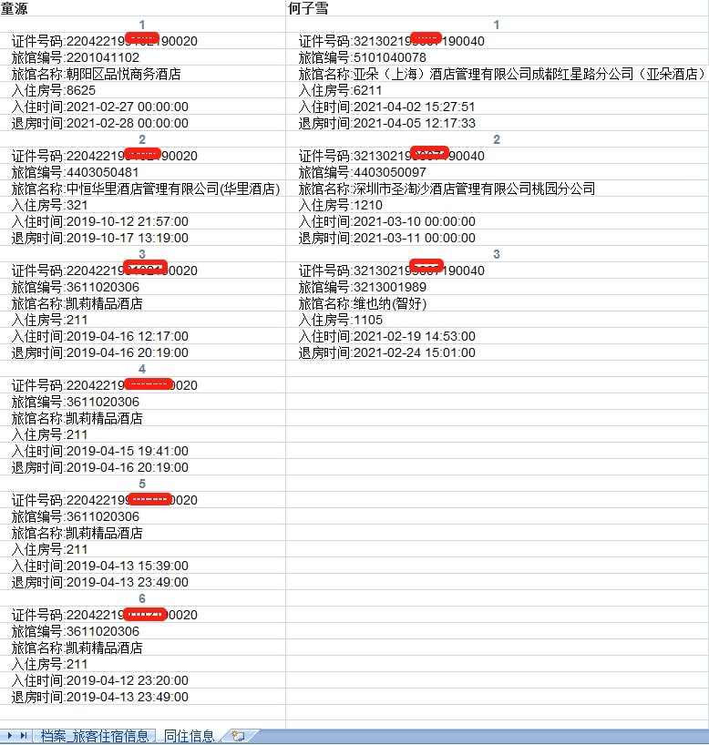 若需查询某人的开房记录,须提供其身份证号码或者常用手机号(如有多个手机号请备注)。